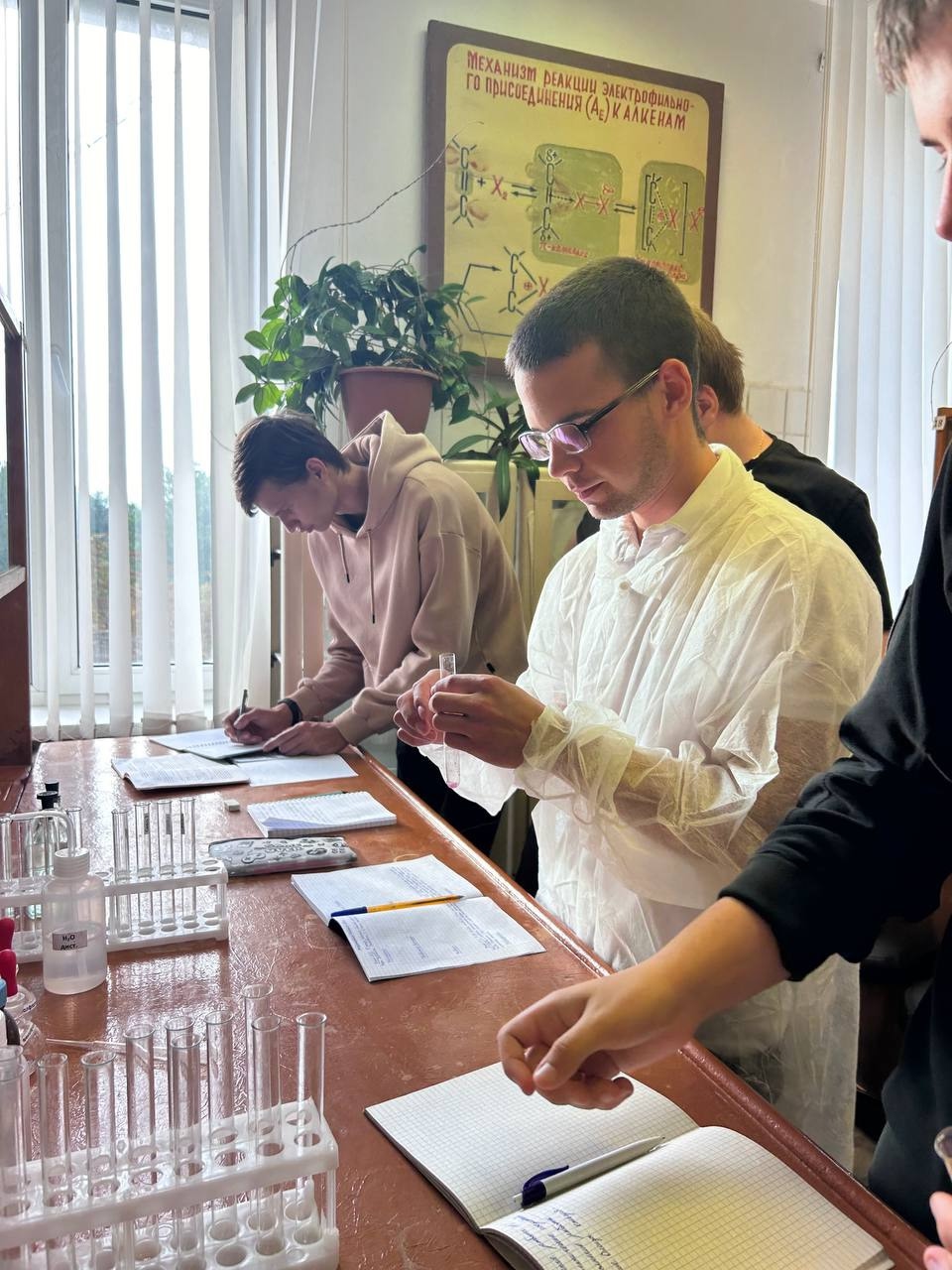 В рамках курса "Химия древесины и синтетических полимеров" студенты первого курса проводили лабораторные исследования для подтверждения теоретических знаний с помощью экспериментальных методов.