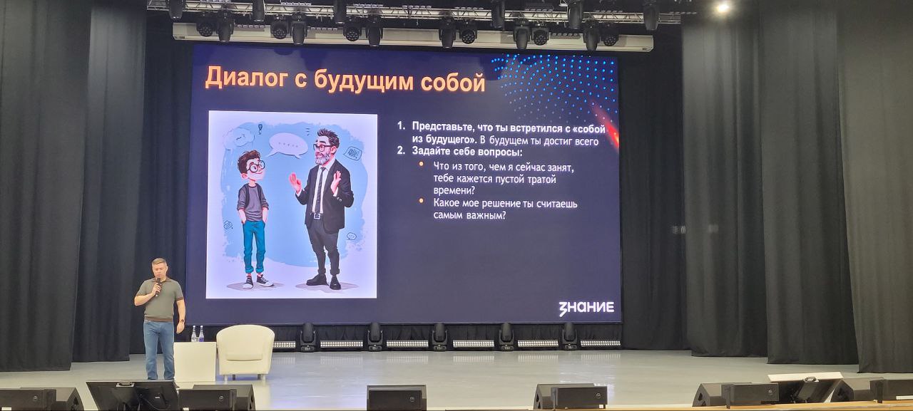 Преподаватели кафедры ТМиСМ, Сальникова А. С. и Шорстова Е. С., посетили лекцию "Личная эффективность в эпоху перемен", представленную Тургушевым С. В., ведущим лектором общества "Знание". В рамках данного мероприятия были рассмотрены ключевые аспекты адаптации человеческого потенциала к динамическим изменениям в профессиональной среде.